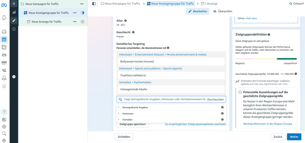 – Seht euch die Reichweite der einzelnen Interessen an.