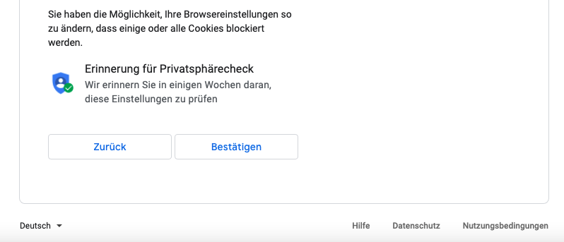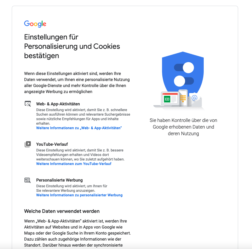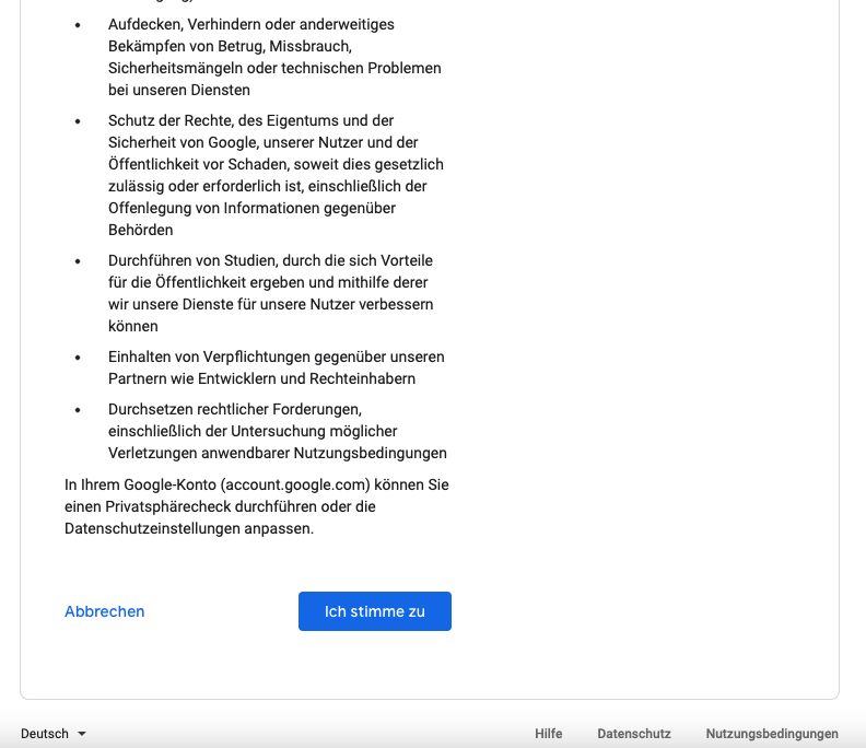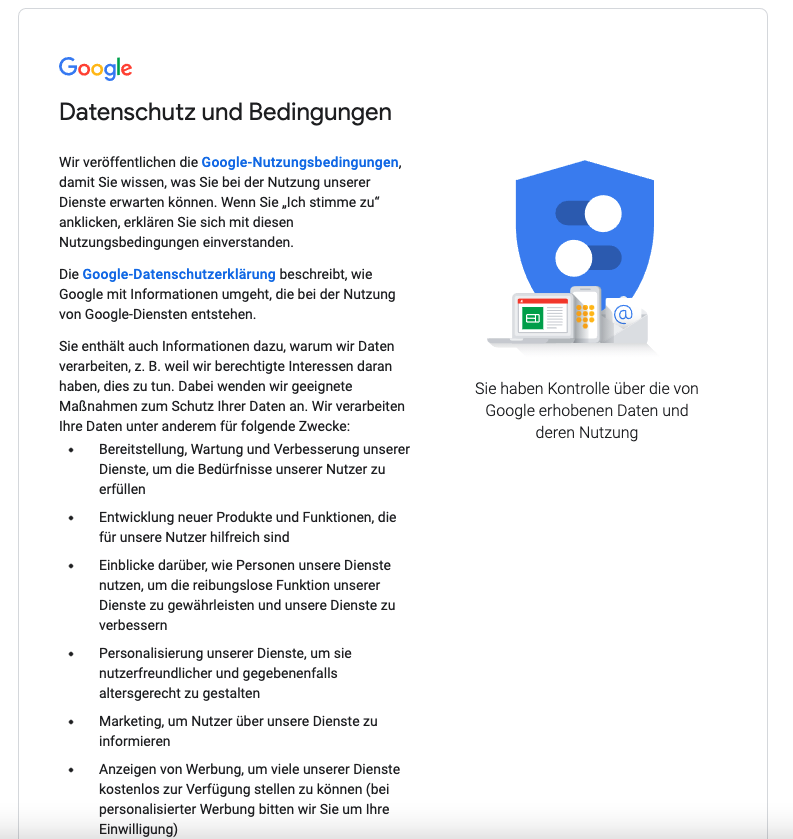 Dann kommen die Google AGB und Privatsphäre Einstellungen da muss man zustimmen sonst geht es nicht weiter. 😉